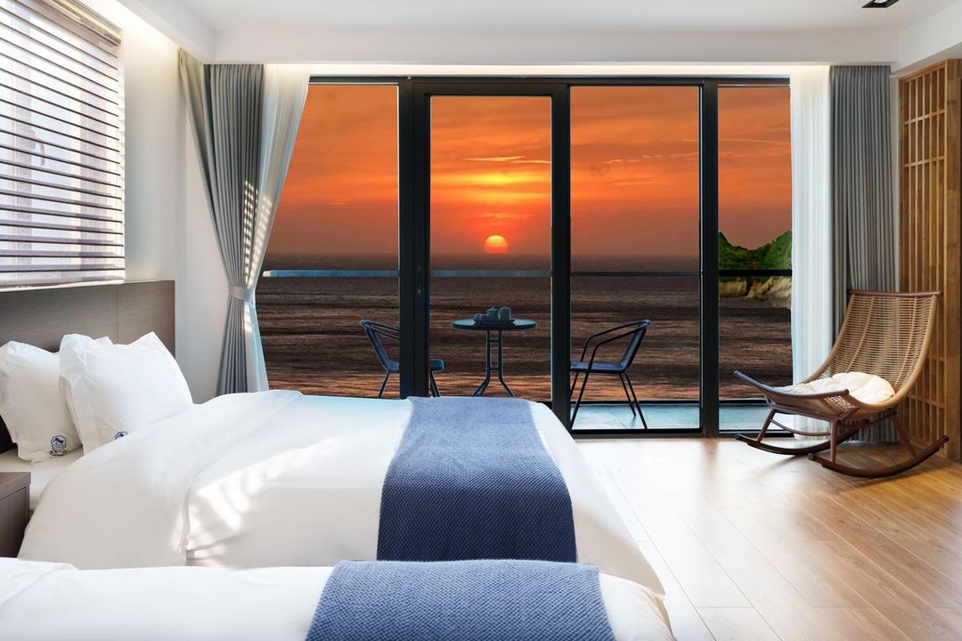 東沙晨曦海岸居所是東沙地區唯一朝東的高點酒店,其頂樓的觀日廳設有舒適沙發與熱飲服務,可完整欣賞太陽從海平線躍出的壯麗畫面。酒店提供「日出專屬早餐」套餐,包含本地海鮮粥與現烤麵包,搭配海浪聲響,營造詩意清晨。此房型僅限HopeGoo平台限量預訂,建議提前1個月安排