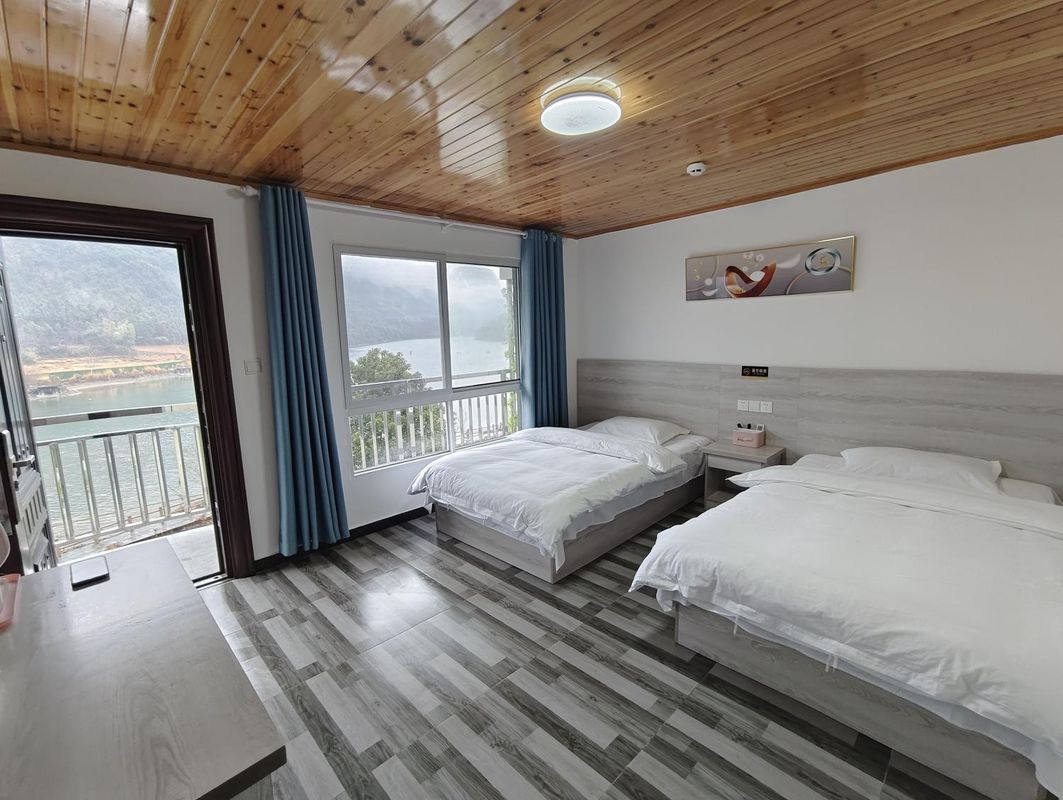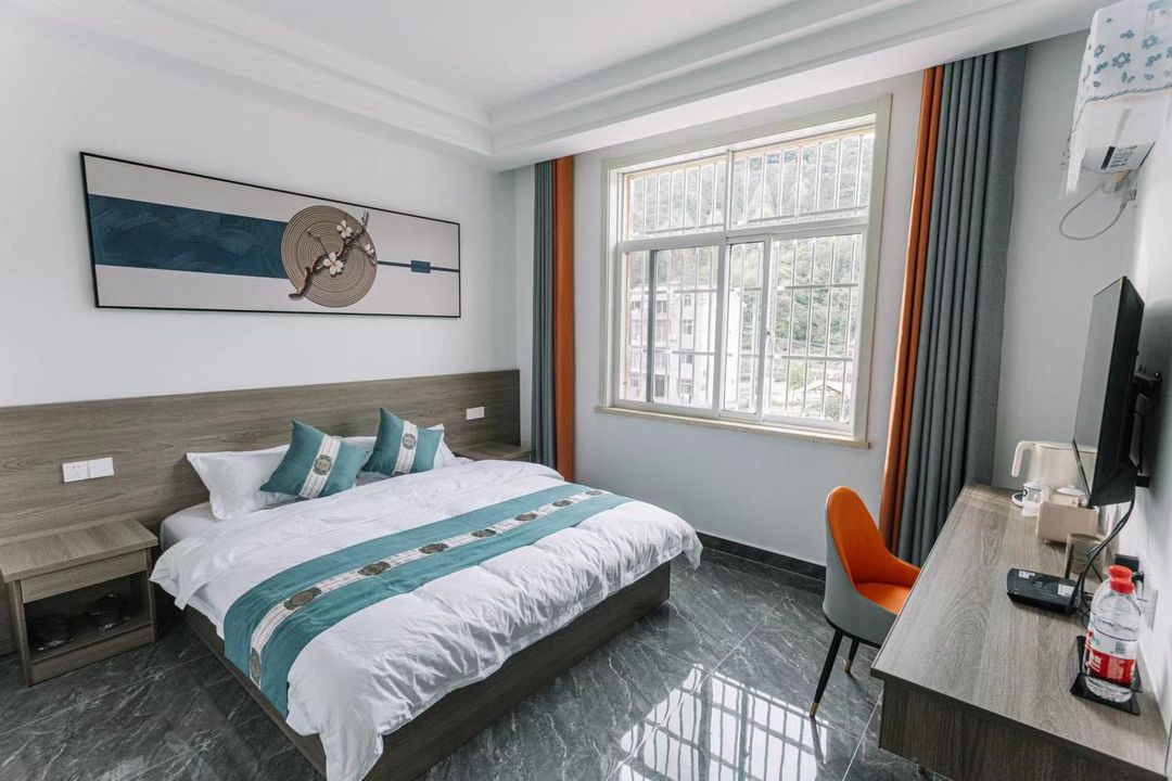 九華山腳·雲隱居 是距離娘娘墓遺址最近的景觀型民宿,其高層客房擁有360度環繞式山景露台,清晨常見薄霧籠罩古墓與遠山,宛如畫卷。所有客房均配備無邊際觀景窗,並設有戶外木製躺椅區,可靜坐賞景。民宿還提供徒步導覽服務,帶領客人沿古道走訪周邊的碑刻群與宋代石雕遺跡。建議透過HopeGoo平台預訂含早餐與導覽的套裝行程,享受更完整的在地體驗。