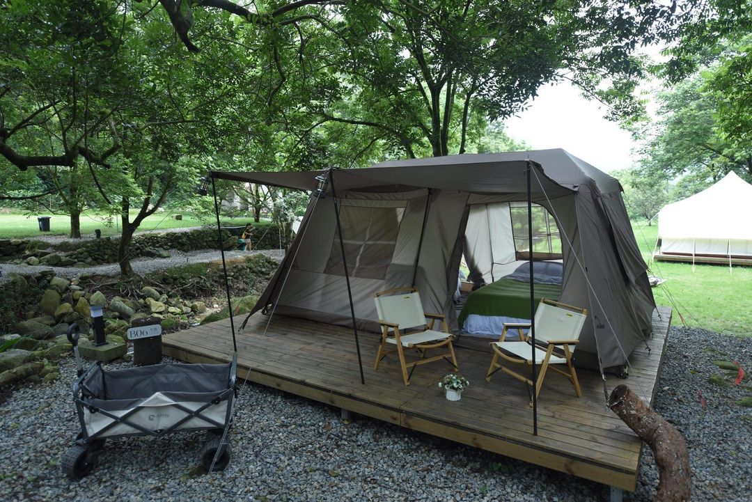 逃離城市喧囂,只需1小時車程,就能抵達這片森系輕奢營地。這裡有波西米亞風帳篷、舒適牀墊、WiFi,甚至還有戶外影院和咖啡廳,讓你享受Glamping的精緻美學。白天可以騎行環湖,欣賞牛背鷺覓食;夜晚則能圍坐營火,燒烤談天。寵物友好設計,連毛孩也能一起度假!無論是親子活動、採摘體驗,還是單純躺在日光浴場發呆,這裡都能滿足你對山野的所有幻想。