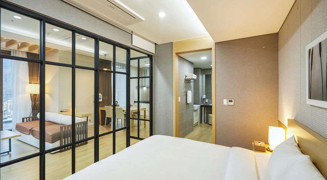 平昌度假村酒店是家庭旅客的理想選擇,設有兒童遊戲室、親子溫泉區及專屬滑雪課程。酒店位於Haemalu步道入口旁,步行5分鐘即可抵達纜車站,並提供免費接駁車服務至主要滑雪場。所有客房均配備暖氣系統與隔音窗,確保舒適睡眠環境。透過HopeGoo可享家庭套票優惠。