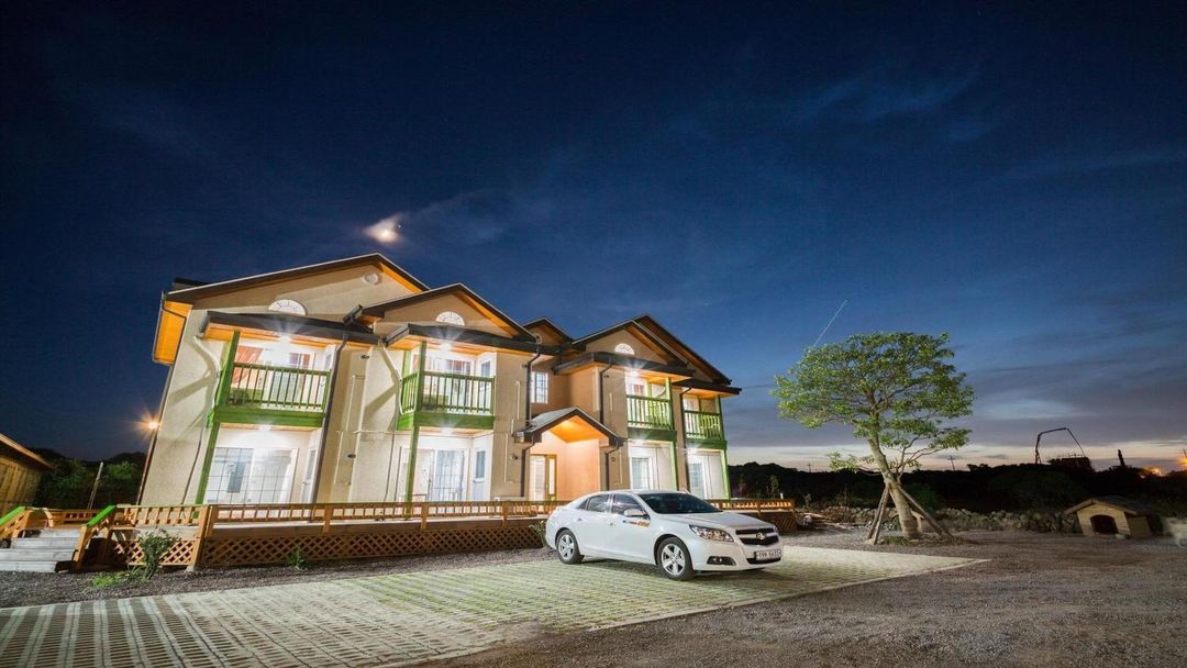 漢林浦海灣別墅是極佳選擇,這座設計型民宿以透明玻璃屋頂懸崖式露台聞名,房間正對漢林浦海灘,夜晚可見星空倒映於海面。民宿提供定制海鮮晚餐服務,由在地廚師現場烹調新鮮捕撈的濟州黑鮪魚,並附贈海風冥想工作坊,深度連結自然與身心平衡