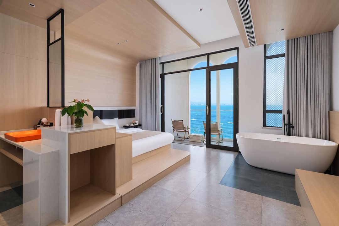 呢間酒店真係度假天堂!坐落喺天涯海角,背靠青山,面朝大海,仲有私人沙灘,私密性一流。房間超大,部分仲有9米闊海景窗,睇日落簡直係享受!頂層嘅無邊際泳池同夕陽酒肆,浪漫到爆,仲有全中國唯一嘅音樂劇劇場,文藝感滿滿。行5分鐘就到海邊小鎮,有過百間餐廳同酒吧,食玩買超方便。仲有親子設施同商務會議廳,無論家庭遊定出差都啱曬!