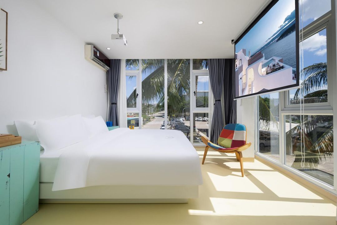 嚟到呢間充滿Y2K未來風嘅度假泳池民宿,真係好似踏入咗時光機!無邊泳池對住海天一色,影相打卡一流;仲有專為小朋友設計嘅兒童泳池同遊樂區,一家大細都玩得開心。鍾意水上活動?浮潛、帆船任你玩,仲可以帶埋寵物一齊度假㗎!房間嘅霓虹色調同科技感設計,每晚都瞓得好有型。24小時前臺同免費停車等周到服務,讓你輕鬆享受三亞嘅陽光與海風~