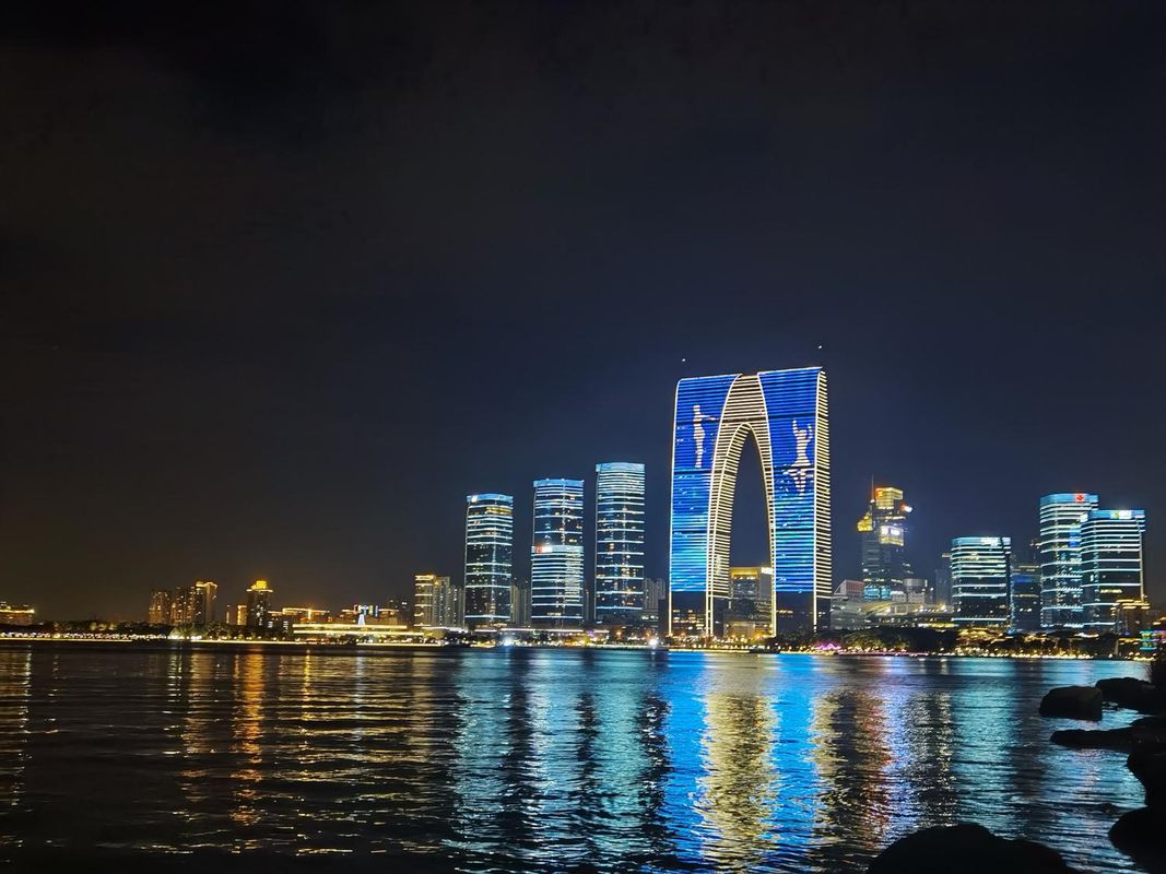 來到位於蘇州工業園區的金雞湖,這裡是現代與自然的完美融合!湖畔漫步時可以欣賞到璀璨的摩天大樓與湖光水色交相輝映,夜晚的音樂噴泉更是驚艷全場。別忘了搭乘遊船從不同角度感受這片水域的魅力,或者在湖邊的咖啡館享受悠閒時光,月光碼頭的夜景絕對讓你流連忘返!