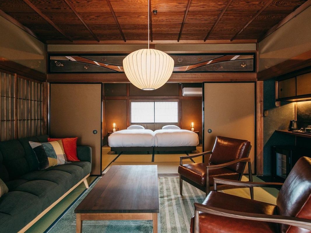 御所町屋旅館特設山景庭園房,房內設有整面落地窗,可將九品寺後方的深山竹林與春季櫻花隧道盡收眼底。部分房型更配有私人小露台,適合於清晨品茶或觀賞日出時分的雲海。每間客房均採用本地檜木裝修,並搭配天然香氛系統,營造沉浸式森林療癒空間。此外,旅館每月舉辦一次夜間燈光導覽,在靜謐中感受古寺與自然的共生之美。透過HopeGoo平台可預訂限定景觀房。