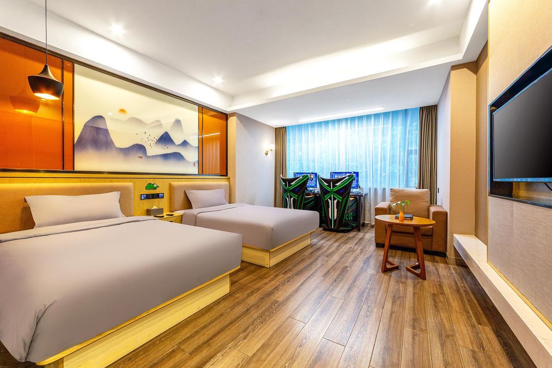 呢度係電競愛好者嘅天堂!高配置電腦同專業電競設備讓你盡情開黑,仲有太空主題設計,型格又神祕。位置超方便,近地鐵站同金馬坊商圈,去邊都咁易。酒店仲提供24小時前臺、寵物友好服務,連小朋友都有專屬兒童樂園,一家大細都啱!湖景房望出去夜景超靚,仲可以喺花園度chill下。服務貼心,設施齊全,性價比高,快啲嚟體驗啦!