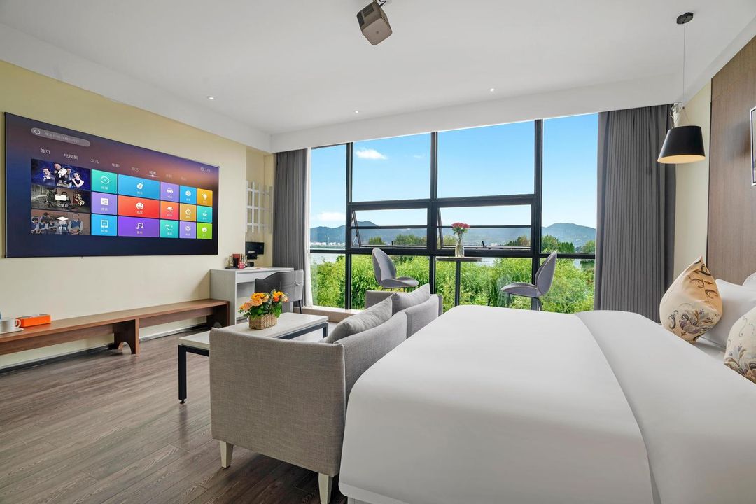 香格里拉昆明酒店是唯一可預訂到直視龍門索道與西山全景的景觀房型,其高樓層客房採用雙層隔音玻璃設計,白天可見雲霧繚繞的山巒,夜晚則可欣賞索道燈光流動的璀璨畫面。該房型需提前2週以上預訂,且支持HopeGoo平台專屬升級禮遇,含免費下午茶與景觀導覽服務