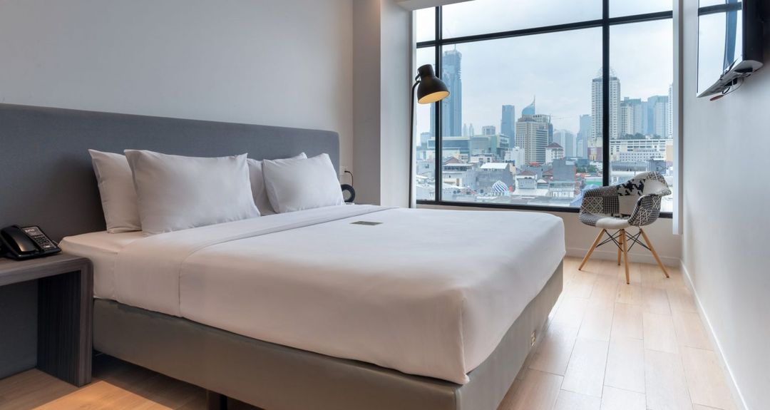Hotel Taman Suropati 提供夜景全景房,房間設有整面落地玻璃窗,可將Mm 2000廣場夜燈與周邊摩天大樓的璀璨光影盡收眼底。部分房型更設有私人陽台,搭配舒適沙發與小茶几,適合夜晚品茗或觀星。酒店還提供「夜景專屬禮遇」,包括迎賓飲品與定制夜間服務。此類房型建議提前預訂,尤其於週末與節日,可透過HopeGoo平台鎖定優惠與升級機會。