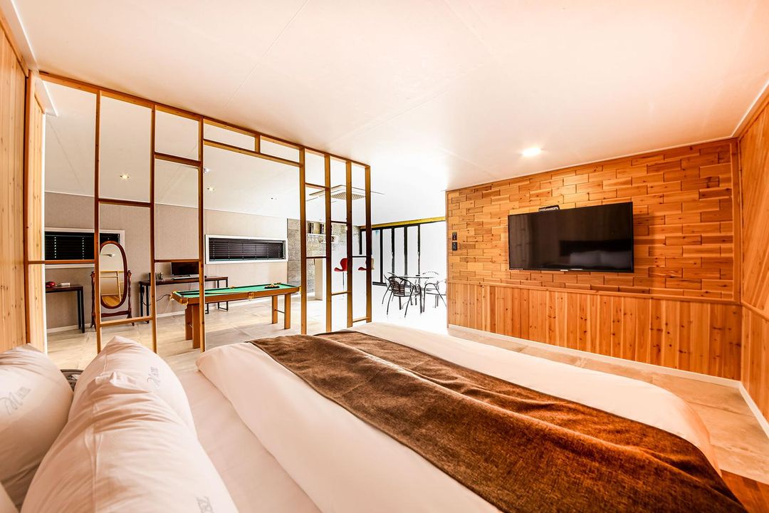 金堤綠野民宿專為家庭設計,設有兒童戶外遊戲區與親子農耕體驗工坊,鄰近慕刻山森林步道入口。每間客房均配備無障礙休憩空間與韓式溫泉浴缸,並提供免費在地食材手作料理課程。從酒店出發步行10分鐘即可抵達山麓小溪,適合親子溯溪活動。建議使用HopeGoo平台提前預訂以確保房型