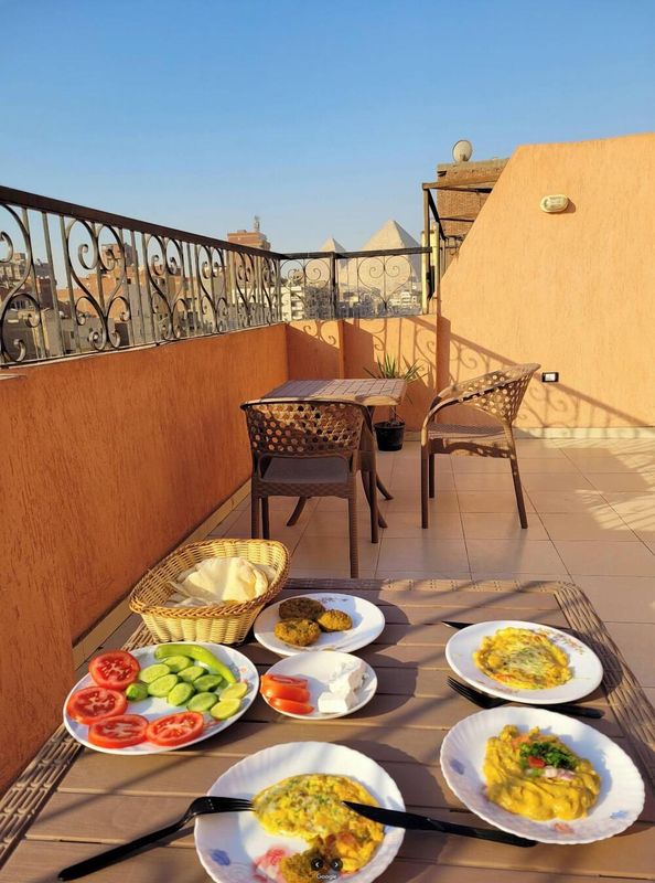 呢度簡直係家庭同冒險愛好者嘅天堂!步行15分鐘就到吉薩金字塔羣,仲可以喺屋頂花園睇到震撼景觀。酒店有齊兒童俱樂部、攀巖同單車租借,小朋友實玩到唔願走!24小時健身中心同免費接機服務貼心到爆,夜晚仲可以喺星空下燒烤。客房配備迷你吧同高清電視,仲有埃及特色早餐等你體驗~