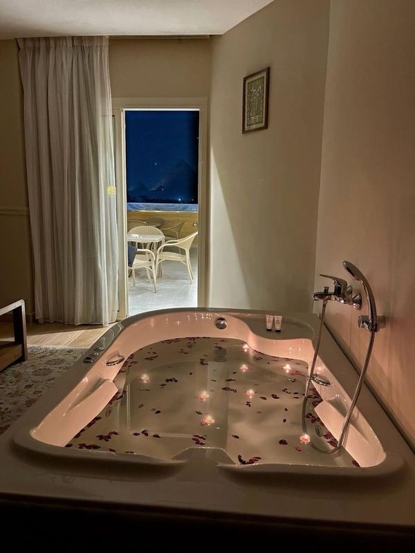 想喺埃及金字塔腳下享受一次難忘嘅旅程?呢間旅館簡直係不二之選!步行15分鐘就能直達吉薩金字塔羣,仲可以喺露臺欣賞絕美景緻。無論係家庭旅行定商務出差,佢都有齊你需要嘅設施:兒童遊樂區、保姆服務、商務中心,仲有土耳其浴同Spa等你放鬆。夜晚可以喺野餐區燒烤,或者喺酒吧小酌一杯。客房配備私人熱水浴缸,仲有埃及棉牀單保證你瞓得好舒服。記得參加每日免費招待會,認識其他旅人!