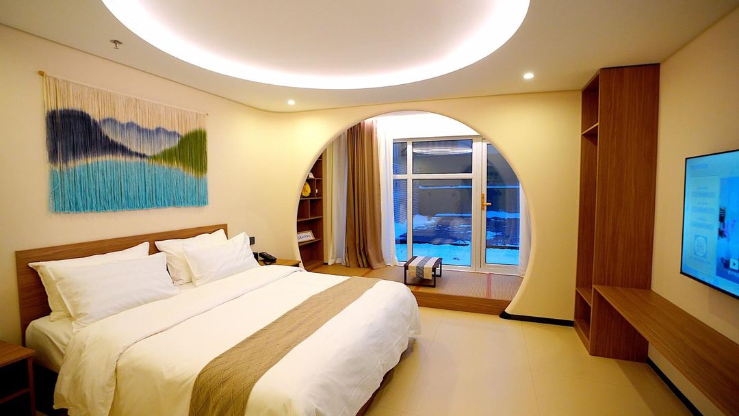 北國藝境酒店是當地首屈一指的精品住宿,由本地藝術家參與設計,每間房皆配有原創壁畫手工編織地毯。酒店位於平房區政府正對面,步行3分鐘即達文化長廊非物質遺產展示館。此外,提供免費接駁車服務至周邊購物中心與餐飲街區,提升旅行效率。
