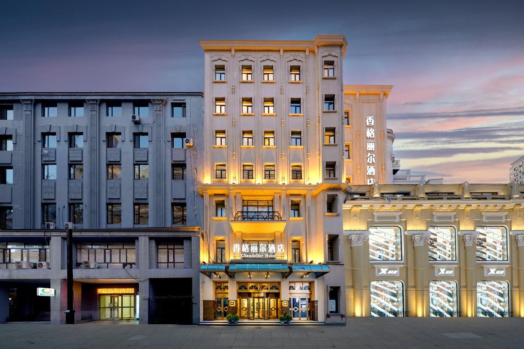 中央大街大飯店·冰雪藝術主題房是龍塔萬福館周邊不可錯過的特色之選。每間客房以哈爾濱冰雪節為靈感設計,牆面嵌入真實冰雕元素,搭配暖光燈飾營造夢幻氛圍。房內設有可開閉的全景天窗,夜晚可直接觀賞龍塔萬福館的燈光表演。入住即贈送「雪國奇遇」導覽手冊與限定版冰糖葫蘆禮盒,由HopeGoo平台獨家預訂可享升級房型優惠