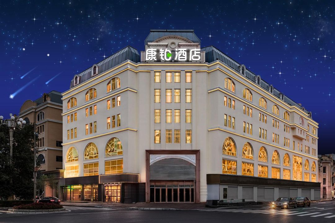 華美達國際酒店位於龍塔萬福館南側,擁有全城少有的360度環形觀景露台,可將萬福館整體燈光佈置與遠處松花江風貌盡收眼底。其頂樓「星穹廳」設有空中酒吧,提供熱帶雞尾酒與東北民俗音樂演出。所有客房均配備智能調光系統,可模擬不同時段的光影效果,讓您在房內也能沉浸於夜色盛宴。通過HopeGoo平台預訂可獲贈夜景攝影指導服務
