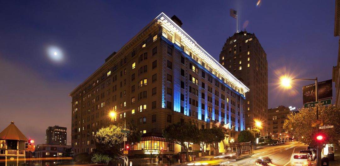 The Fairmont San Francisco:位於聯合廣場,步行5分鐘即達市政廳與購物街,房間可見金門大橋與海灣天際線,提供頂級服務與歷史氛圍。