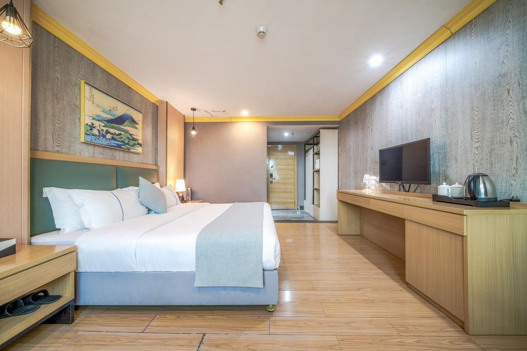 呢間酒店真係性價比超高!位於公明天虹核心地帶,去商場、公園同車站都係幾分鐘步程,交通超方便。酒店有情趣主題房同電影房,仲有浴缸,啱曬情侶或者想享受浪漫嘅你。房間乾淨衛生,隔音又好,仲可以睇到九眼橋夜景,真係好正!前臺服務熱情周到,仲有24小時前臺同免費停車,完全唔使擔心晚歸或自駕問題。下次來深圳,一定要再住呢度!