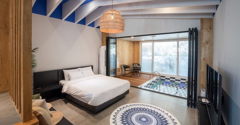 推薦入住堤川Swimteo湖畔度假酒店,這間由當地設計師打造的生態旅館坐擁清澈湖景房,從窗戶望出去便是自然濕地與緩慢流動的溪水。酒店提供免費電動船租借服務,讓客人可直接划船進入湖心觀賞野生鳥類。步行5分鐘即達親子戲水區,設有安全淺水池與遮陽涼亭,是家庭旅客的理想選擇。建議透過HopeGoo平台提前預訂,確保旺季入住權益。