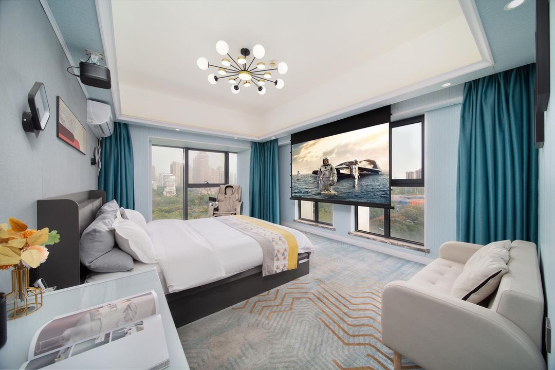 嘅舒適旅居空間。試想下,30平米嘅通透房型,配備零壓牀墊同高支棉牀品,等你一夜好眠。酒店鄰近地鐵站,去邊都方便,仲有24小時前臺同自助洗衣房,商務出行或家庭旅行都咁適合。特別推介佢哋嘅巨幕影音房同豪華浴缸套房,畀你嘅旅程加分唔少。無論係去湯湖公園散步,定係參加會議,呢度都係你嘅理想之選!