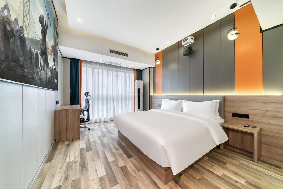 呢度係一間極具特色嘅LOFT雙鑰匙設計酒店,樓頂仲可以俯瞰成個西溪濕地,風景超靚!房間配有百寸投影儀,夜晚睇戲簡直係享受。位置超方便,近地鐵站同大型商場,去西湖都係20分鐘車程。酒店仲有24小時前臺同安保,安全又貼心。無論係家庭出遊定商務出行,呢度都能滿足你嘅需求,仲有兒童遊樂區同健身中心,真係住得舒服又放心!