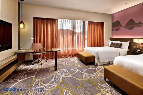 呢間酒店絕對係商務同休閒嘅完美之選!坐落於將軍澳站上蓋,直駁大型商場PopCorn,仲有免費穿梭巴士去高鐵西九龍站同尖沙咀,交通超方便。客房寬敞,36平方米起跳,仲有落地玻璃可以望到綠野同市景,真係好舒服!設施方面有室外園林泳池、水力按摩池同24小時健身室,啱曬想放鬆嘅你。餐廳選擇多,國際自助餐、粵式點心同頂層嘅露天酒吧,美食美景一次過享受!