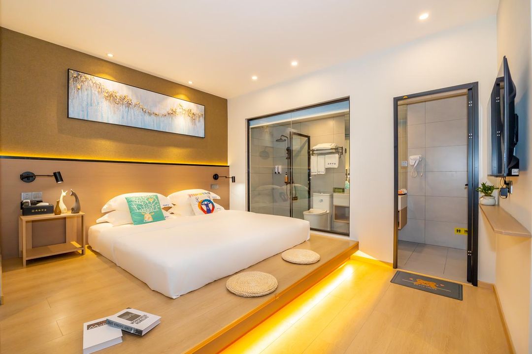 呢度係一個潛水愛好者同家庭旅客嘅天堂!民宿結合咗朋克養生同生態旅遊概念,提供水上運動設備、親近動物同兒童遊樂區,啱曬一家大細。仲有桑拿浴室、SPA按摩同茶室,等你放鬆身心。夜晚可以喺酒吧暢飲,或者喺家庭影院睇戲。寵物友好政策,連你嘅毛孩都可以一齊度假!位置便利,近兩江四湖象山景區,仲有免費停車同接機服務,真係貼心到爆!
