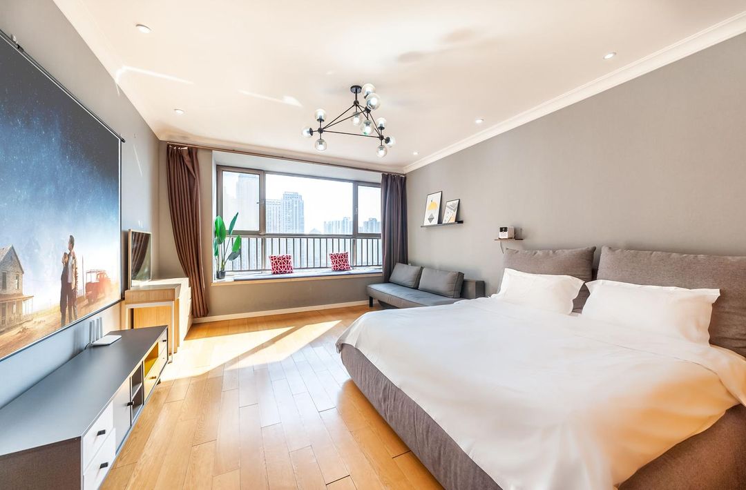 呢間精品公寓真係性價比超高!位於市中心,步行即可到達大悅城同南市食品街,夜晚仲可以喺北安橋欣賞浪漫海河夜景。客房時尚精緻,配備百寸超清投影,仲有會員免費觀影服務,啱曬情侶或者家庭入住。樓下就有相聲館、保利廣場同24小時超市,交通超方便,去天津之眼、濱江道等景點都係幾分鐘車程。服務周到,環境舒適,絕對係你天津之旅嘅理想之選!