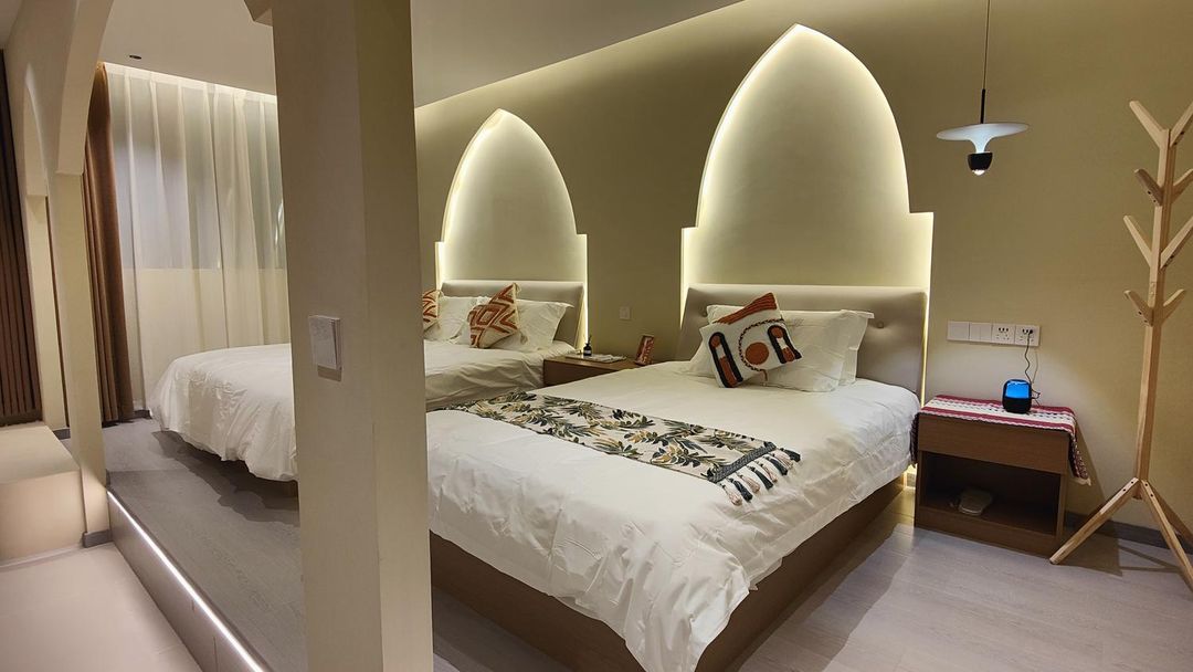 香格里拉烏魯木齊酒店位於拱拜遺址正南側,擁有最佳夜景觀賞視角,其高層客房配備全景落地窗,可完整收錄燈光秀的動態光影變化。酒店特別推出「夜觀盛典禮遇」,包含免費升級至景觀房、一組特製夜拍配件(三腳架、遙控快門)及限量版燈光秀導覽手冊。