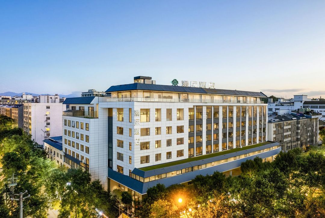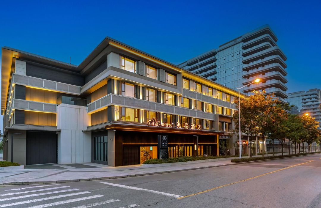 西安華邑酒店是近期熱門打卡地,其設計融合唐風琉璃瓦屋頂與現代簡約線條,大廳設有巨型星空穹頂,夜晚燈光映照下宛如穿越時空。客房以「長安十二时辰」為主題,陳設仿古屏風與青花瓷擺件,陽台可直拍南門箭樓與城牆燈光。酒店外觀則設有光影互動牆,搭配投影藝術,成為社交媒體上的高頻曝光景點。建議傍晚前往,捕捉夕陽餘暉與燈火交織的絕美畫面。