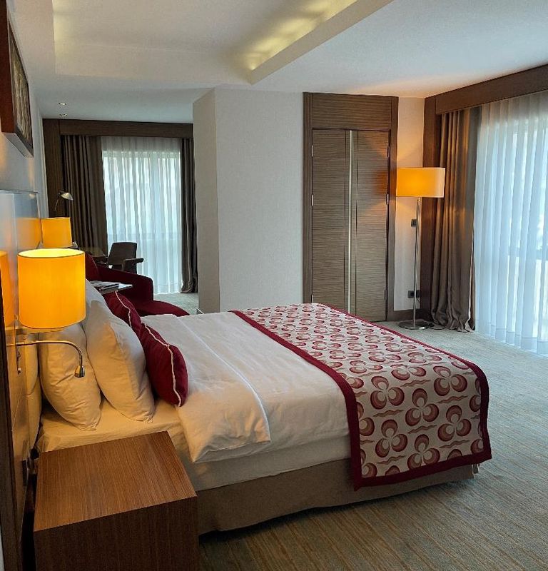 這間豪華酒店位於伊斯坦堡核心區,交通便利,鄰近購物中心和娛樂景點,非常適閤家庭和商務旅客。客房提供加厚層臥牀和名牌洗護用品,讓您享受如家般的舒適。酒店設施豐富,包括室外和室內游泳池、SPA浴缸以及兒童泳池,適合親子同樂。餐飲選擇多元,有2間餐廳和酒吧,還提供24小時客房送餐服務。商務設施齊全,擁有近2000平方米的會議場地,是舉辦活動的理想選擇。