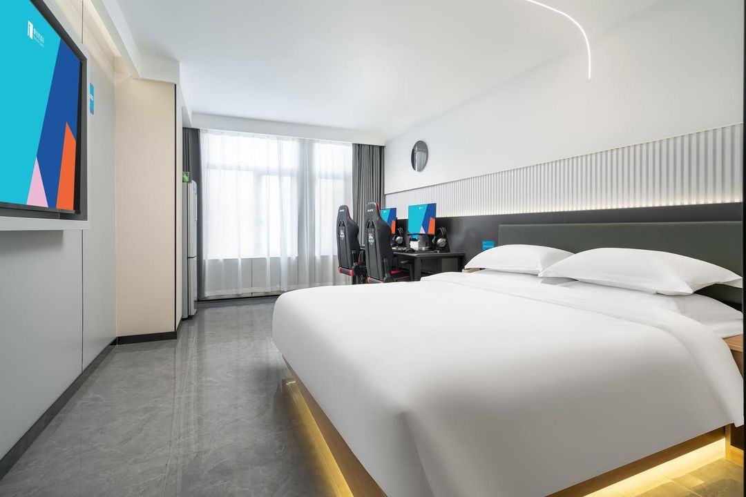 呢度係電競發燒友嘅天堂!位於獅子橋美食街,周邊小吃多、出行超方便,一落樓就搵到嘢食。酒店配有240Hz刷新率屏幕同RTX30/20系列顯卡,設備勁到爆燈,開黑暢玩無壓力。房間隔音好、設計有型,仲有24小時前臺同熱情服務,疫情防護都做足。無論係情侶約會定朋友聚會,呢度性價比高到癲,快啲約埋班隊友黎體驗啦!